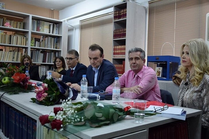 Για το βιβλίο μίλησαν η κα Αναστασία Γκίκα (Γενική Γραμματέας Πρωτοβάθμιας και Δευτεροβάθμιας Εκπαίδευσης του ΥΠΑΙΘ), ο κ. Αλέξανδρος Κόπτσης (Περιφερειακός Διευθυντής Εκπαίδευσης Κεντρικής Μακεδονίας), ο κ. Γιώργος Ιορδανίδης (Αντιπρύτανης του Πανεπιστημίου Δυτικής Μακεδονίας), η κα Κιγιτσιόγλου-Βλάχου (Καθηγήτρια Εφαρμοσμένης Γλωσσολογίας και Πρόεδρος του Τμήματος Γαλλικής Γλώσσας και Φιλολογίας ΑΠΘ)και ο Οργανωτικός Συντονιστής του 1ου ΠΕΚΕΣ Κ. Μακεδονίας, κ. Ελευθέριος Βέτσιος.